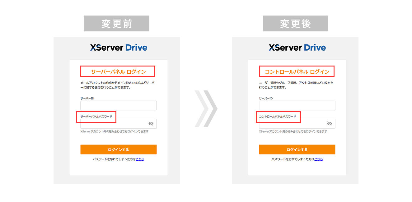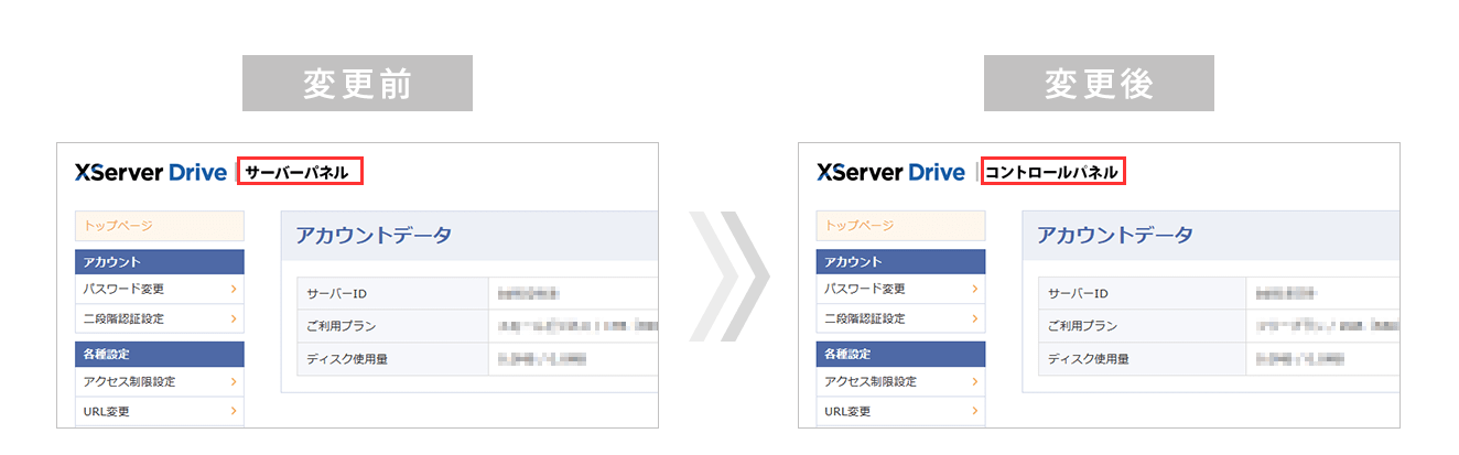 【変更前】サーバーパネル → 【変更後】コントロールパネル