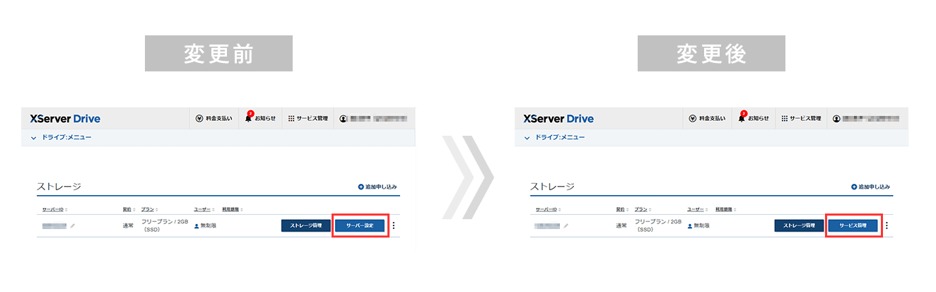 【変更前】サーバー設定 → 【変更後】サービス管理